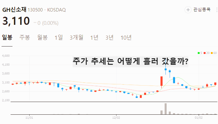 아래에서 그 동안 GH신소재 주가 추세가 어떻게 흘러갔는지 확인해보세요.