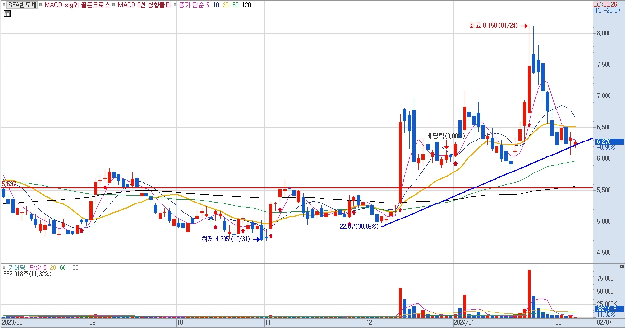 현재 SFA반도체 주가는 급격한 가격 조정을 받으며 6,330원에 위치하고 있습니다.