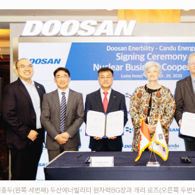 두산에너빌리티가 캐나다의 원전기업 캔두에너지와 원자력 사업 협력을 위한 우선공급자 협약을 체결했다고 29일 밝혔습니다.