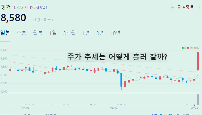 개인적으로 큰 상승이 기대되는 핑거 주가는 2024-09-04 기준 8580원입니다.