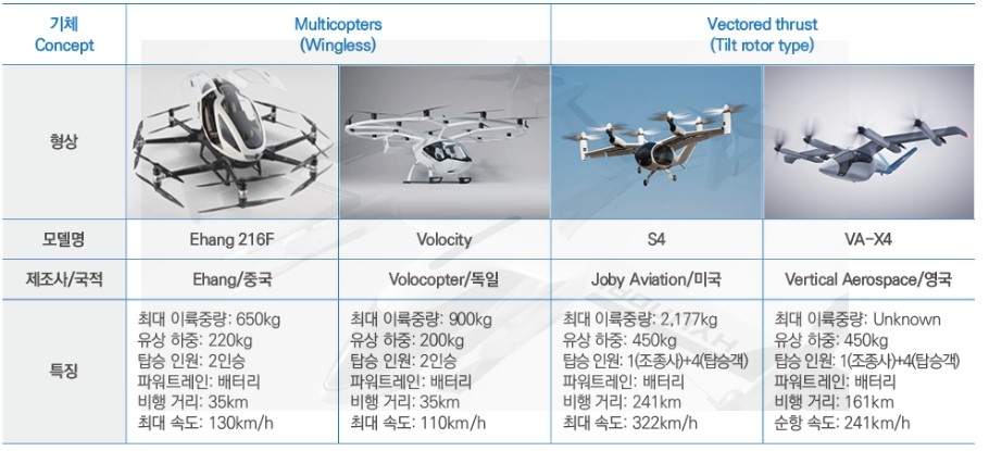 - 전기추진 : 고효율의 전기모터와 배터리 개발 UAM의 비행 효율성과 비행 시간 향상