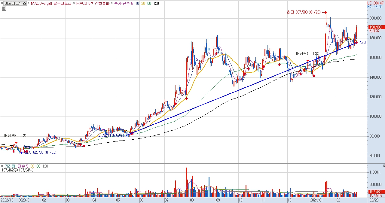 이오테크닉스는 반도체 공정에서 패키징 과정에 사용되는 레이저 장비를 주력으로 하는 제조사입니다. 특히, 삼성전자와의 레이저 그루빙 및 스텔스 다이싱 장비 양산평가 협약으로 주가가 상승한 적이 있습니다.