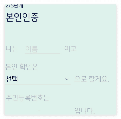 3. 본인인증 및 약관동의를 진행합니다.(개인 정보 및 휴대폰 번호 기입)