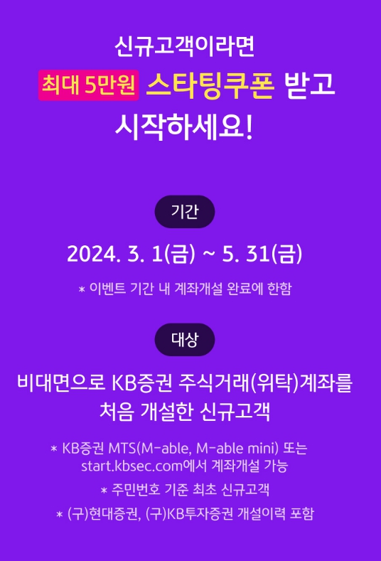 2) 대상: KB증권 주식거래(종합위탁) 계좌를 비대면으로 처음 개설하는 신규 고객